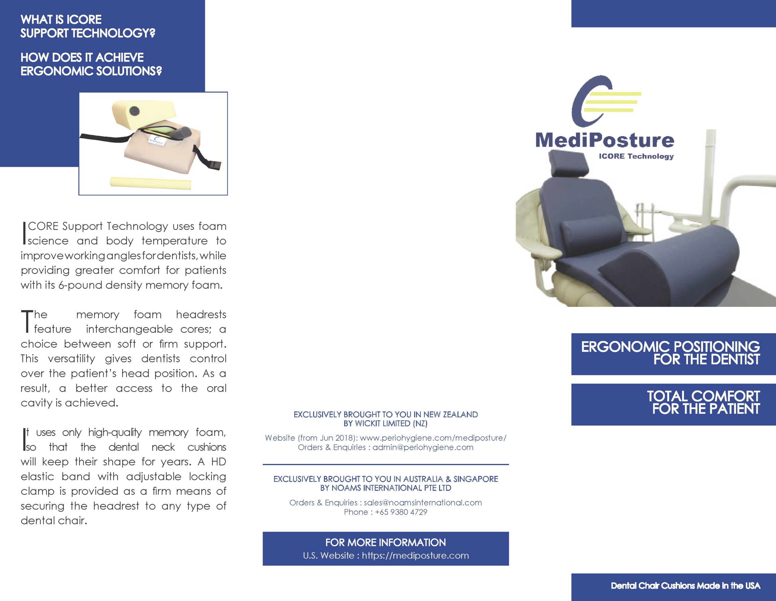 WE ARE THE DISTRIBUTOR FOR MEDIPOSTURE CUSHIONS IN NEW ZEALAND. MEDIPOSTURE DENTAL CHAIR OVERLAY CUSHIONS ARE MADE IN, AND DELIVERED DIRECT FROM THE USA, AND THEY ARE:-